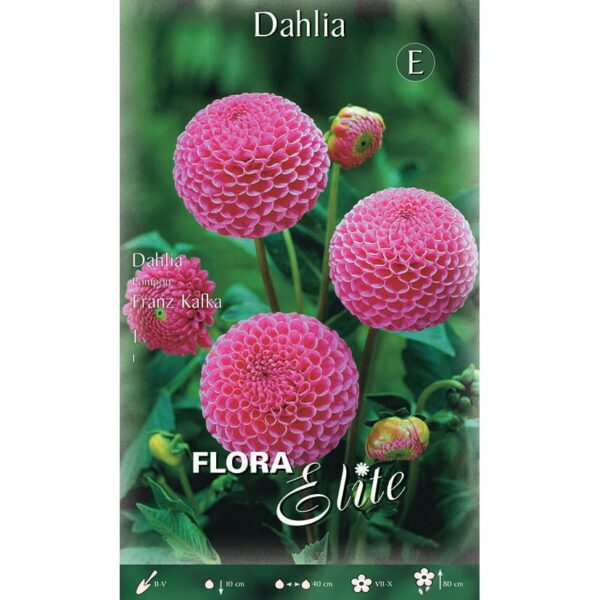 ‘Franz Kafka’ – įspūdinga dekoratyvinė jurginų veislė, išsiskirianti stambiais, pilnaviduriais žiedais šviesiai rožinės spalvos su subtiliais tamsesniais atspalviais. Ši veislė suteikia gėlynui elegancijos ir ryškumo, puikiai tinka tiek sodinti gėlynų centre, tiek kaip kontrastingą akcentą tarp kitų augalų. ‘Franz Kafka’ žydi ilgai ir gausiai nuo vasaros vidurio iki pirmųjų šalnų, o tvirti stiebai leidžia sėkmingai naudoti šią veislę skynimui – žiedai vazoje išlieka dekoratyvūs ilgą laiką.