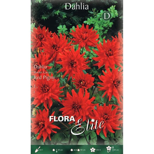‘Red Pigmy’ – žemaūgė jurginų veislė, išsiskirianti ryškiai raudonais, pilnaviduriais žiedais ir kompaktišku augimu. Dėl nedidelio aukščio puikiai tinka gėlynų priekiui, apvadams bei auginimui vazonuose ar loveliuose. Žydi ilgai ir gausiai nuo vasaros vidurio iki šalnų, suteikdamas sodui ryškų ir energingą spalvinį akcentą. Lengvai derinamas su kitais vasariniais augalais, nereikalauja sudėtingos priežiūros.
