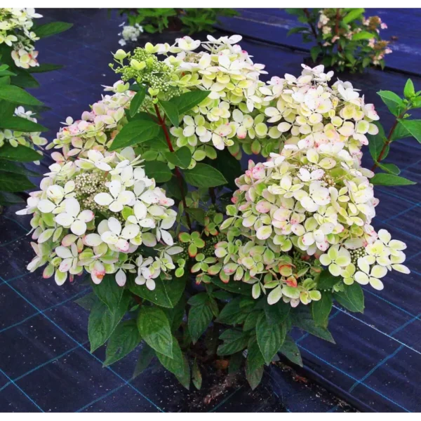 Šluotelinė hortenzija ‘Pastelgreen’ („Renxolor“) yra išskirtinė, kompaktiška veislė, vertinama dėl savo unikalios savybės drastiškai keisti žiedų spalvą viso sezono metu. Žiedynai, siekiantys 15–20 cm, žydėjimą pradeda baltais ir kreminiais atspalviais, vėliau įgauna gaivių pistacijų žalumos tonų, o rudenį nusidažo švelniai rausva bei avietine spalva. Tai stačiašakis, tankus krūmas, užaugantis iki 1,2–1,5 metro aukščio, todėl puikiai tinka tiek mažiems sodams, tiek auginimui terasų vazonuose ar kaip akcentinis augalas gėlynuose. Augalas yra itin atsparus šalčiui (iki -30°C) ir nereiklus, tačiau geriausiai klesti saulėtoje vietoje ir drėgnoje dirvoje. Kasmetinis genėjimas pavasarį užtikrina gausų žydėjimą ant naujų ūglių ir išlaiko dekoratyvią krūmo formą.