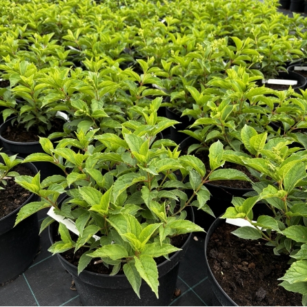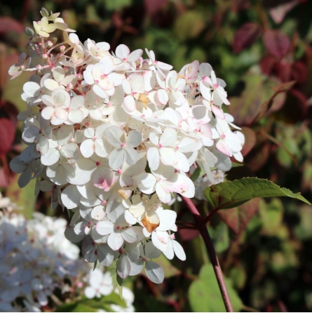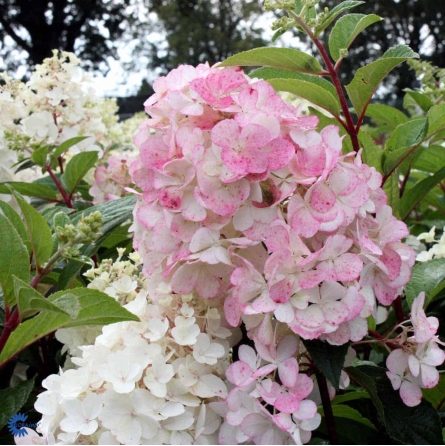 Šluotelinė hortenzija ‘Pink Lady’ (Hydrangea paniculata) – tai išskirtinio grožio dekoratyvus krūmas, vertinamas dėl savo elegancijos ir įspūdingo, ilgai trunkančio žydėjimo. Augalas suformuoja platų, tankų vainiką, kuris sezono metu pasipuošia dideliais, iki 30 cm ilgio kūgio formos žiedynais. Žiedai savo spalvų gamą pradeda nuo kreminio baltumo, vėliau įgauna švelnų rožinį atspalvį, o rudenį tampa tamsiai rožiniai, sukurdami dinamišką ir romantišką sodo peizažą. Tamsiai žali lapai puikiai kontrastuoja su šviesiais žiedais, o tvirtos šakos gerai išlaiko žiedynų svorį net ir po lietaus. Ši veislė yra itin atspari šalčiui ir puikiai adaptuojasi prie Lietuvos klimato sąlygų, todėl idealiai tinka sodinti tiek kaip pavienis akcentas vejoje, tiek formuojant įspūdingas, žydinčias gyvatvores.