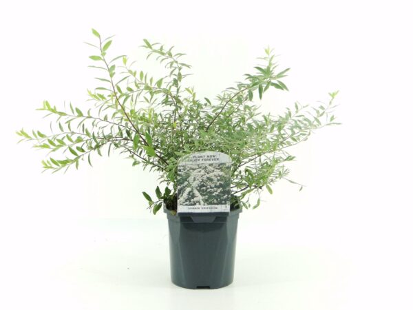 Vienas iš anksčiausiai žydinčių pavasarį krūmų lengvai svyrančiomis šakomis iki 2,0 m aukščio. Žydi itin gausiai baltais žiedais, kurie susitelkę ilguose, iki 25 cm žiedynuose, dar neišsiskleidus lapams. Sukuria balto kaip sniegas fontano vaizdą žydėjimo metu. Lapai siauri, matinės žalios spalvos, rudenį nusidažo geltonai. Augalas nereiklus, atsparus šalčiui. Geriausiai jaučiasi saulėtoje vietoje ir augdamas vandeniui laidžiame dirvožemyje. Puikiai tinka auginti kaip akcentinį augalą bei gyvatvorėms formuoti.