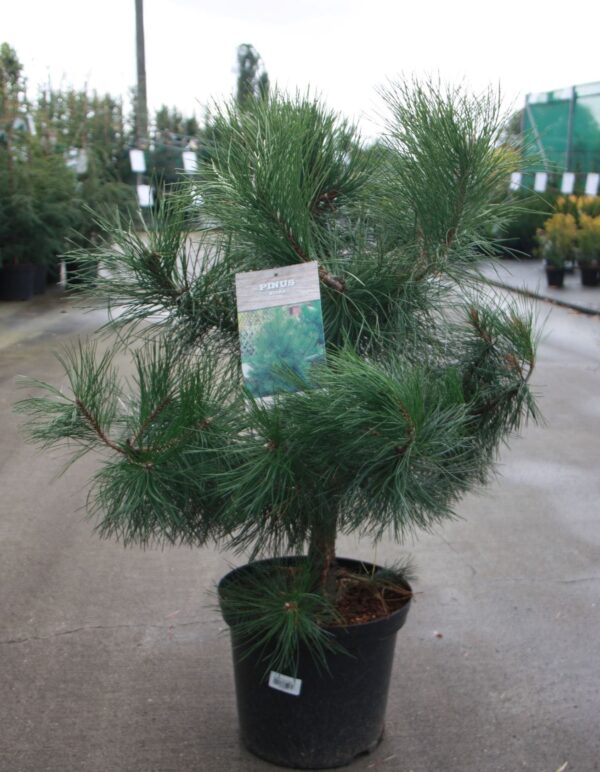 Vidutinio dydžio medis, greitai suauga į plačią kūginę sodriai žalios spalvos lają, subrendęs medis kupoliškos formos laja. Kamienas nuo žemės atvirose vietovėse nelinkęs nuplikti. Spygliai dideli tvirti sodriai žalios spalvos. Nereikli dirvožemiui ir drėgmei aukštas atsparumas užterštam miestų orui. Puikiai tinka greitai augančioms užtvaroms nuo vėjų, kelių formuoti.